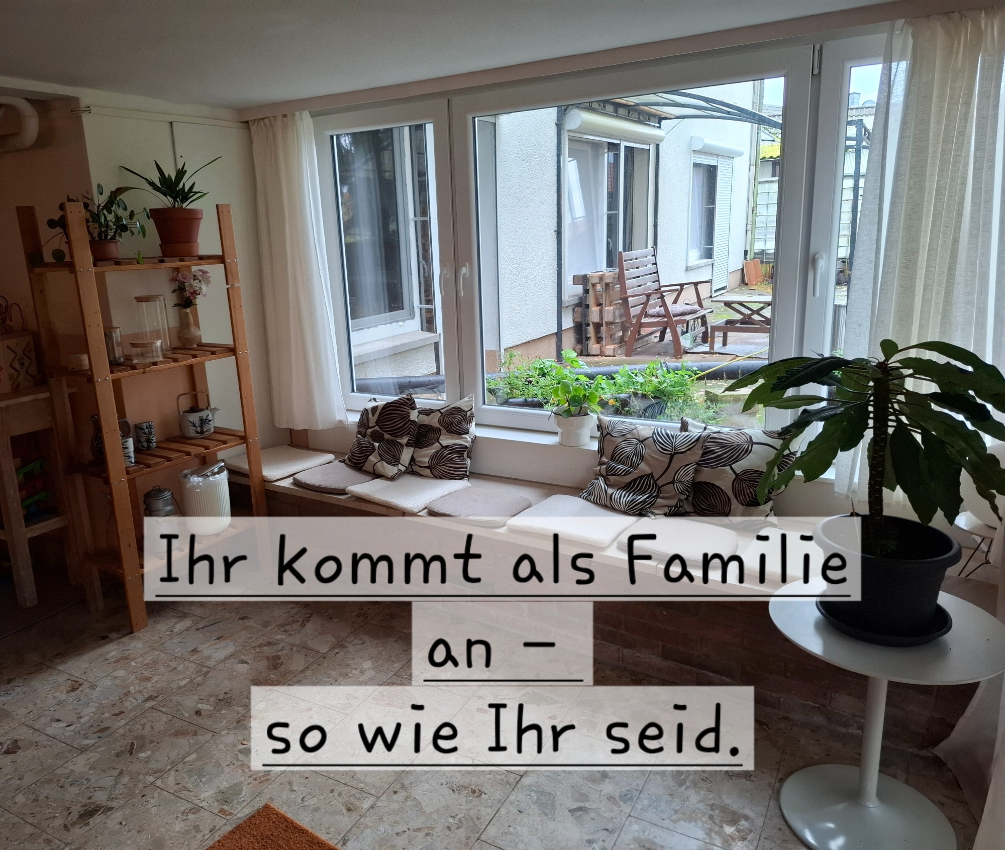 Ich arbeite mit Euch Bezugsmenschen - Eure Kinder werden nicht befragt. Kinder sind so wertvoll allein dadurch, dass sie dabei sind. Sie dürfen sich zeigen und mitreden - oder einfach spielen. So entsteht ein natürlicher, lebendiger Raum.